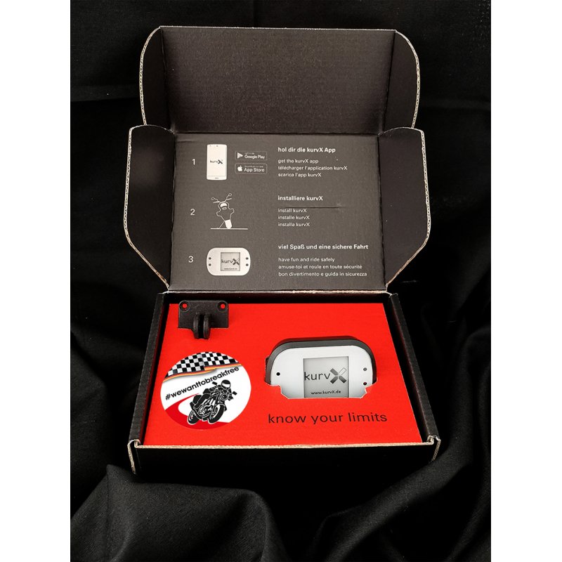 Mit kurvX denkst du Kurven neu. Nach jeder Kurve zeigt dir das Display deine erreichte Schräglage ? direkt, klar und unverfälscht. Starte zusätzlich eine Session, um in der kostenlosen kurvX App detaillierte Fahrdaten wie Beschleunigung, Verzögerung und Einlenkpunkte auszuwerten ? ganz ohne Abo-Kosten.